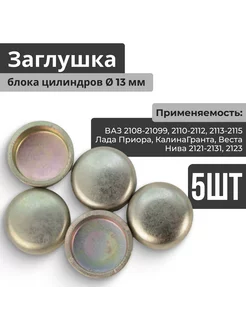 Заглушка блока цилиндров для ВАЗ, чашечная 5 штук D 13 мм