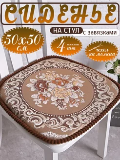 Подушка на стул 50х50см с завязками комплект 4 штуки