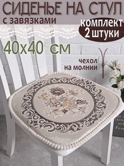 Подушка на стул 50х50см с завязками комплект 2 штуки