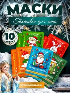Набор тканевых масок для лица новогодний подарочный 10 шт