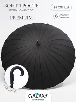 Зонт трость усиленный черный 140 см 24 спицы большой