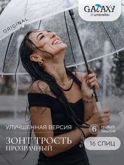 Зонт трость черный большой купол 16 спиц антиветер 120 см