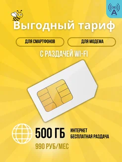 Сим-карта 4G с интернетом 500 ГБ желтый выгодный тариф 990р