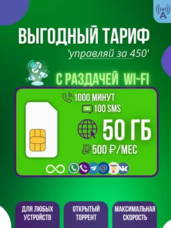 Сим-карта 50 Гб и 1000 мин за 500р