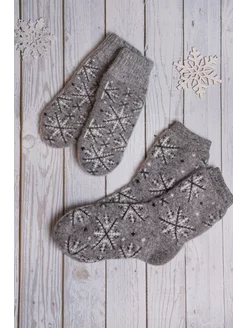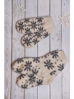 Носки и варежки комплект теплые шерстяные "Снежинка"