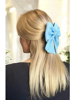Большой бант для волос на заколке голубой