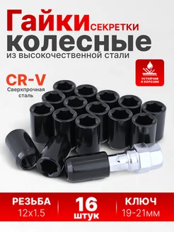Гайка колесная секретка с ключом 12*1 5 черный 16 шт