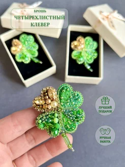 Клевер брошь булавка из бисера