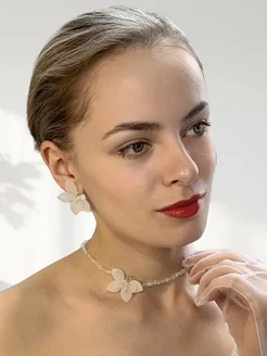 Чокер на шею из алмазного стекла белый с цветком