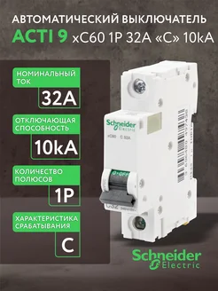 Автоматический выключатель Schneider Acti 9 xC60 1Р 32А
