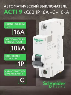 Автоматический выключатель Шнайдер 16А 1Р Schneider Acti 9