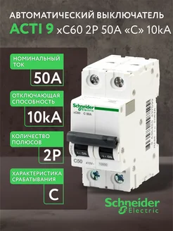 Автоматический выключатель Schneider Acti 9 2Р С 50А (1шт.)