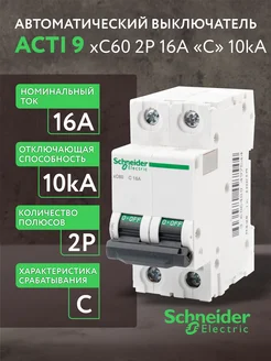 Автоматический выключатель Schneider Acti 9 2Р С 16А (1шт.)