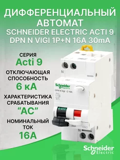 АВДТ Acti 9 DPN N Vigi 1P+N 16A 30mA AC
