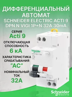 АВДТ Acti 9 DPN N Vigi 1P+N 32A 30mA AC