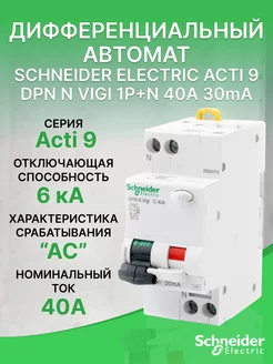 АВДТ Acti 9 DPN N Vigi 1P+N 40A 30mA AC