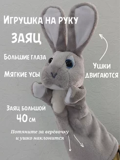 Мягкая игрушка на руку заяц серый для кукольного театра