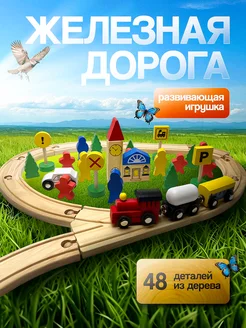 Деревянная железная дорога - 48 деталей