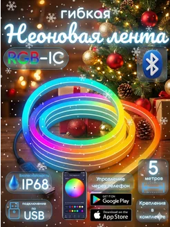 Неоновая лента RGB гибкая 5 метров 7х14мм IP68