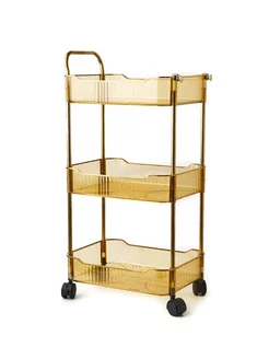 Этажерка на колесиках для ванной и кухни золотисто-зеленая