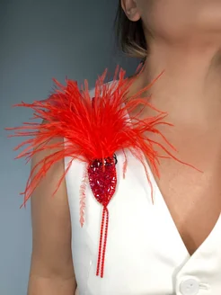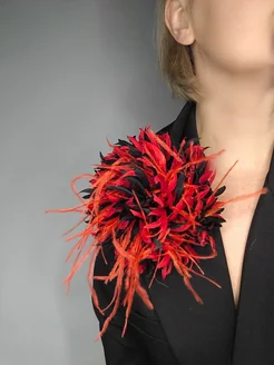 Брошь ручной работы из перьев
