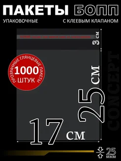 Упаковочные пакеты с клеевым клапаном. БОПП 17х25, 1000 шт
