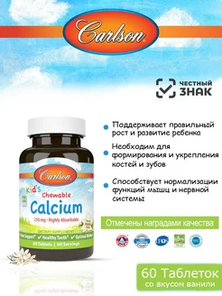 Carlson Детский Кальций 60 жевательных таблеток.Вкус ваниль