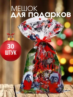 Новогодние подарочные пакеты для сладостей Снегири 30шт