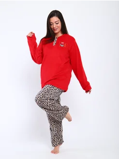 Домашний костюм с брюками пижама леопардовая