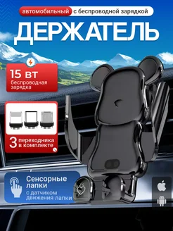 Магнитный держатель для телефона мишка в машину с зарядкой