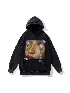 Худи оверсайз с принтом и с капюшоном хлопковое