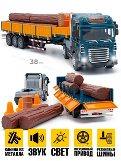 Фура Тягач с бортовым прицепом лесовоз и бревна