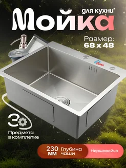 мойка для кухни нержавейка раковина врезная 68*48 черная