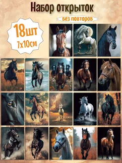 Мини-открытки "Лошади" размер 7х10 см набор 18 шт