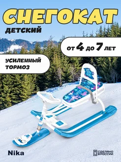 Снегокат детский с ручкой со спинкой рулем санки для двоих