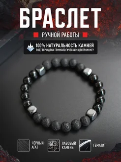 Браслет мужской из натуральных камней, агат, лава, гематит