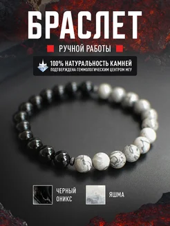 Браслет мужской из натуральных камней черного оникса и яшмы