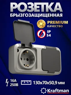 Розетка двойная уличная 16А, IP54 с заземлением, с крышкой