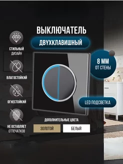 Выключатель двухклавишный с подсветкой, самовозвратный