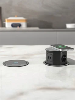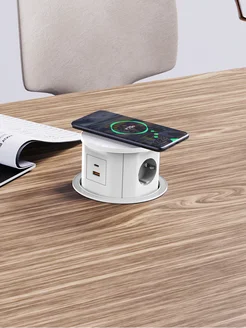 Встраиваемая выдвижная розетка с беспроводной зарядкой и USB
