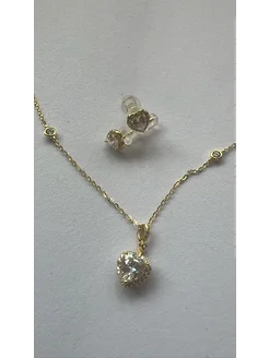 Набор серьги цепочка с кулоном сердце