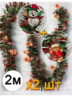 Мишура новогодняя гирлянда пушистая 2 шт по 2 м