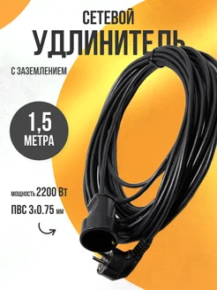 Удлинитель бытовой 1,5 м уличный строительный 3х0,75