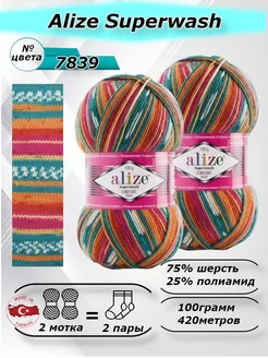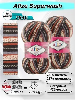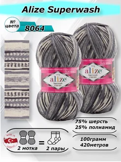 носочная пряжа для вязания спицами и крючком Ализе супервош