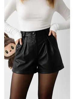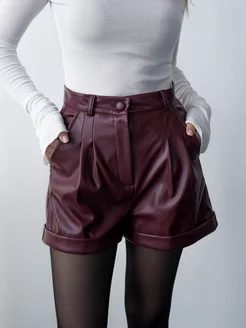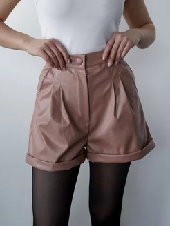 Кожаные шорты с высокой посадкой, экокожа