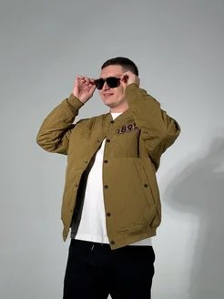 Бомбер стеганый на кнопках с утеплителем и подкладом мужской