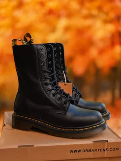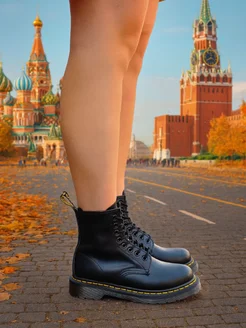 Ботинки осенние кожаные Мартинсы на низкой подошве