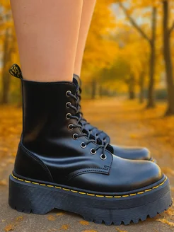 Ботинки осенние кожаные Мартинсы на высокой подошве