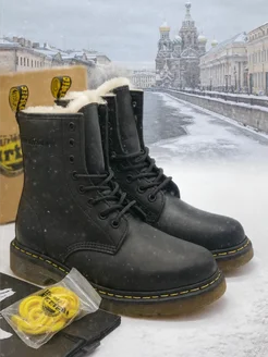 Ботинки зимние Мартинсы на низкой подошве натуральная кожа