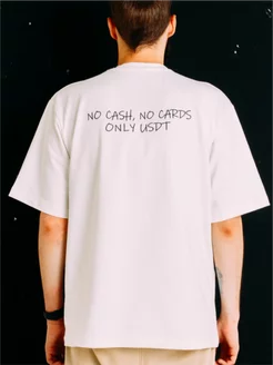 Футболка белая "No cash, no cards, only usdt"